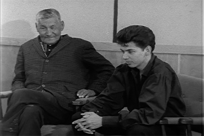 Duke talks to a priest about the negative impacts of the residential schools and Indigenous education in Canada, 1967